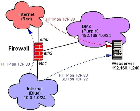 Similarly, as you can see in Figure 1, we've got only three data flows: HTTP from the Internet to a DMZed Web server; HTTP from the internal network to the Internet; and HTTP and SSH from the internal network to the DMZ. Absent are things like IMAP, NNTP, FTP and other services that even simple setups commonly use. If you understand how to configure Zorp to accommodate these, though, you should be able to figure out others. I do, however, discuss DNS and SMTP, even though I omitted them from Figure 1.